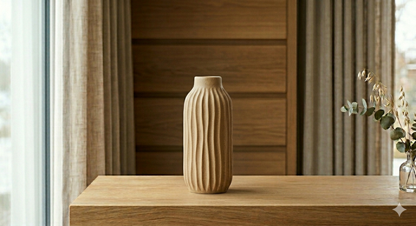 Vasen sind mehr als dekorative Elemente – sie bringen Ruhe, Struktur und eine besondere Atmosphäre in den Raum. Durch ihre Form und ihr Material setzen sie dezente Akzente und fügen sich harmonisch in die Einrichtung ein. So entstehen kleine Details, die das Gesamtbild bewusst ergänzen und dem Raum eine ruhige, ausgewogene Wirkung verleihen.